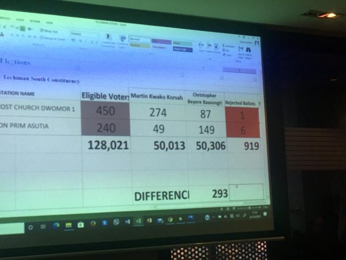 According to the party, data available to them indicates that the NDC secured 50,306 votes against the NPP’s 50,013 with 919 rejected ballots.